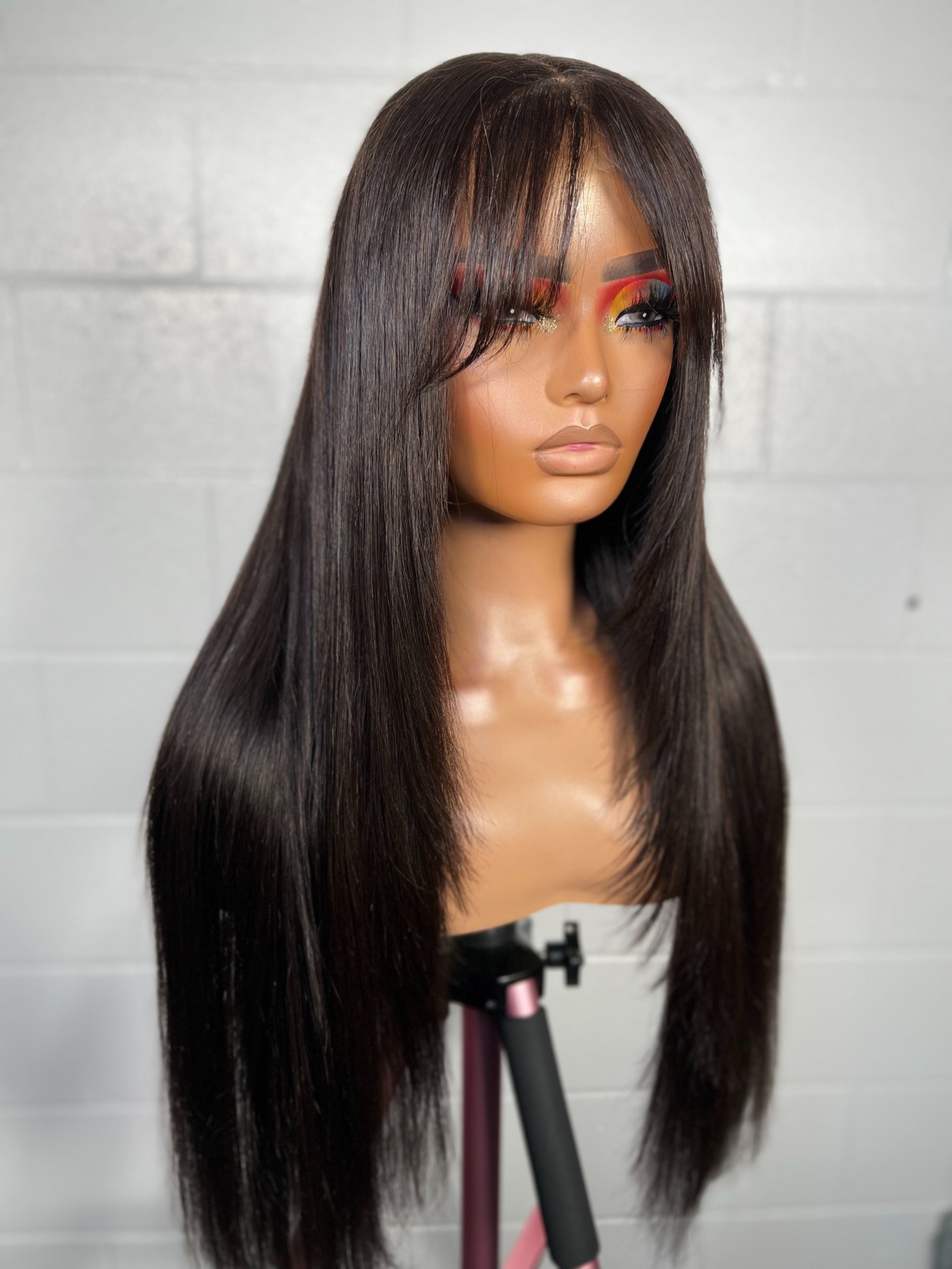 This unit is all about sleek sophistication with movement. Featuring curtain bangs that frame the face and a long, straight cut, she offers that âeffortless model-off-dutyâ vibe. The dark espresso shade adds depth and shine, making it the perfect everyday piece for both casual polish and professional elegance.
