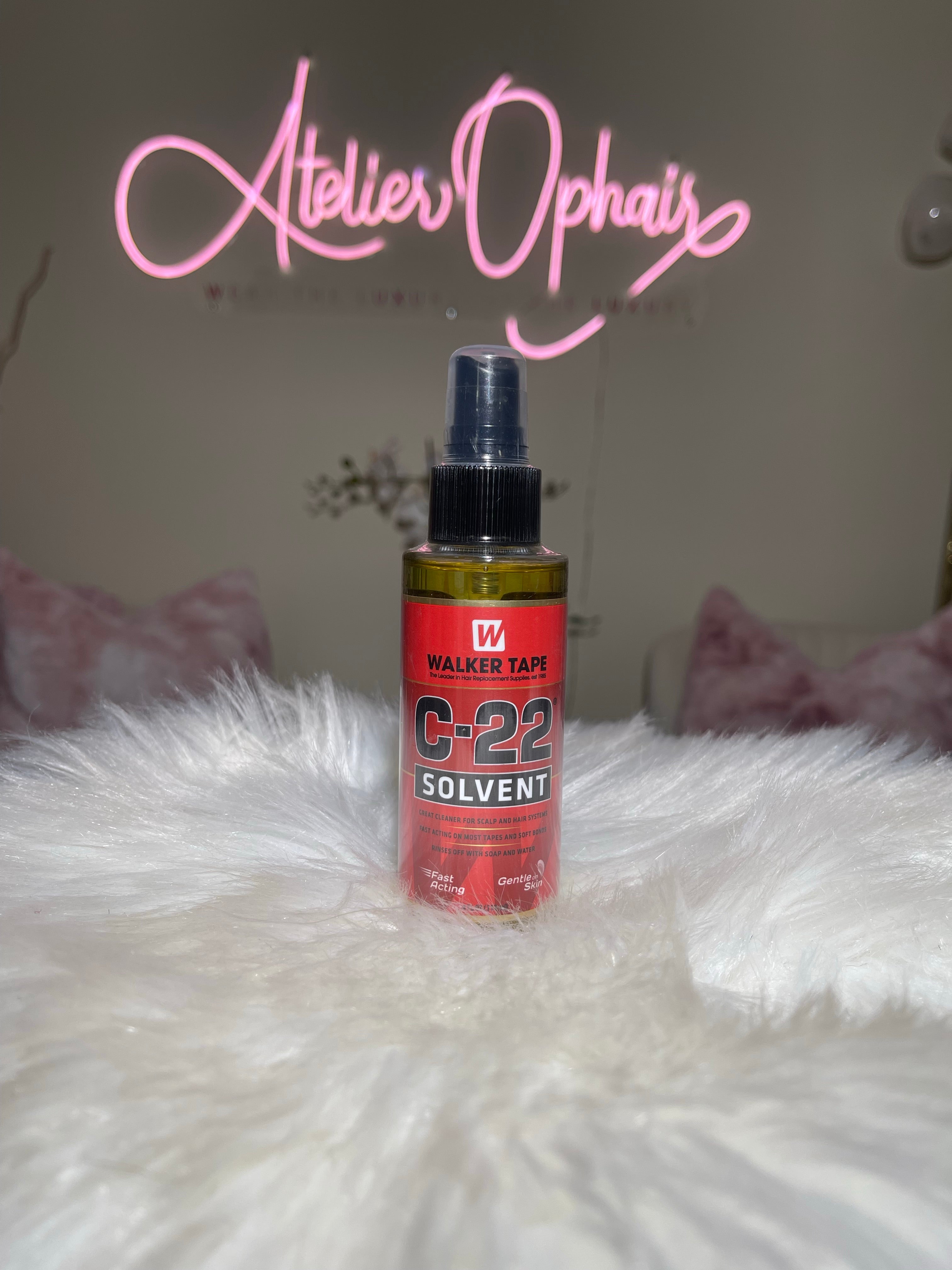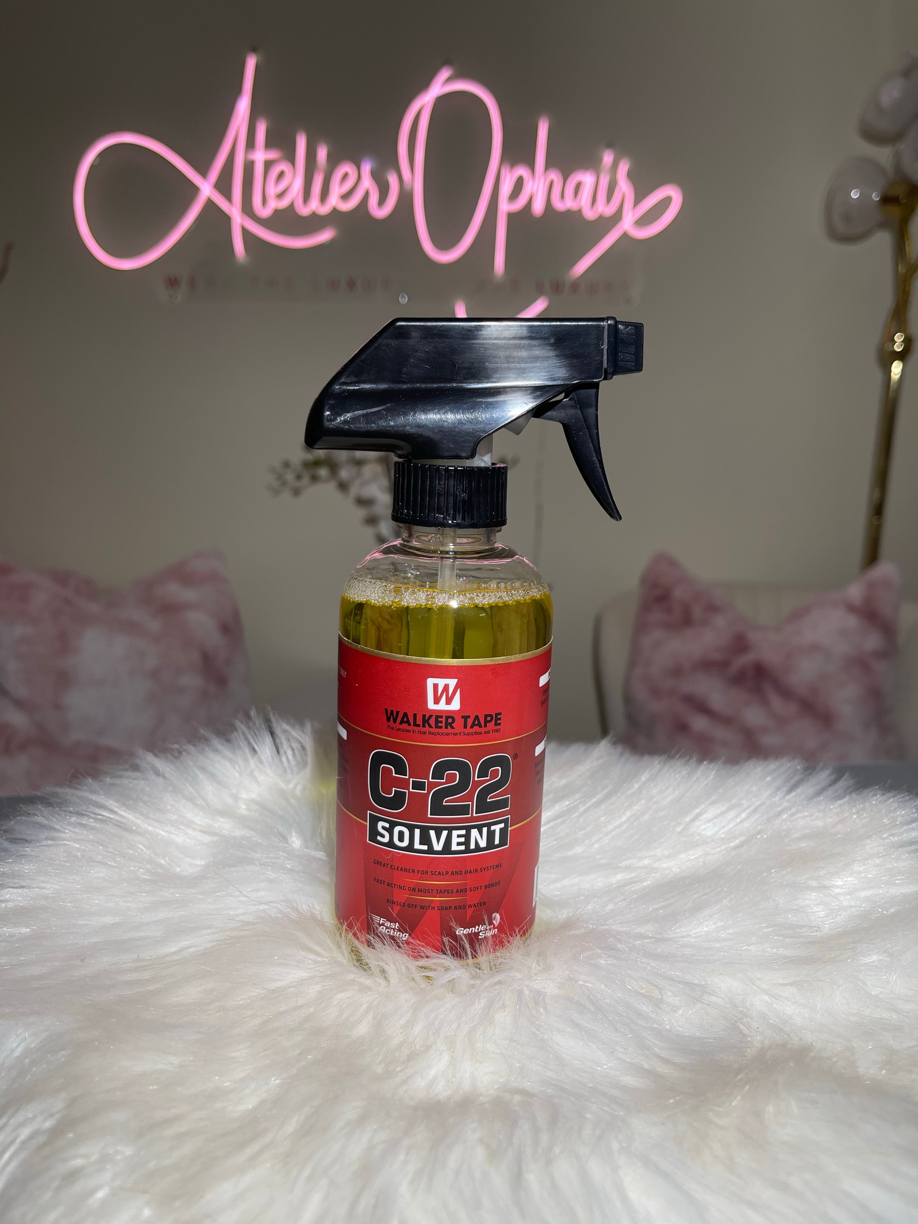 Walker Tape C-22 Citrus Solvent is a fast acting citrus based adhesive remover for scalp, wigs and hair systems.C-22 Citrus Solvent is very effective on most tapes and soft bonds. It has a fresh smelling citrus fragrance, is very gentle on the skin and easily rinses off with soap and water.BenefitsCitrus-basedGreat citrus smellWalker Tape's best-selling SolventFastest-working skin-safe solvent Walker makeOily residue, that rinses easily with soap and waterComparable to AmberHow to UseSpray on adhesive area. Reaction time in as little as 1 minute depending on adhesive build-up.Wipe or brush off residue.Shampoo and Rinse.Caution: C-22 Citrus Solvent is COMBUSTIBLE. Do not use or store near open flame. External use only. Do not apply to irritated skin. Avoid eye contact. Keep out of the reach of children. Pre-test areas before using. Do not leave on silicone bases more than 2-3 minutes.