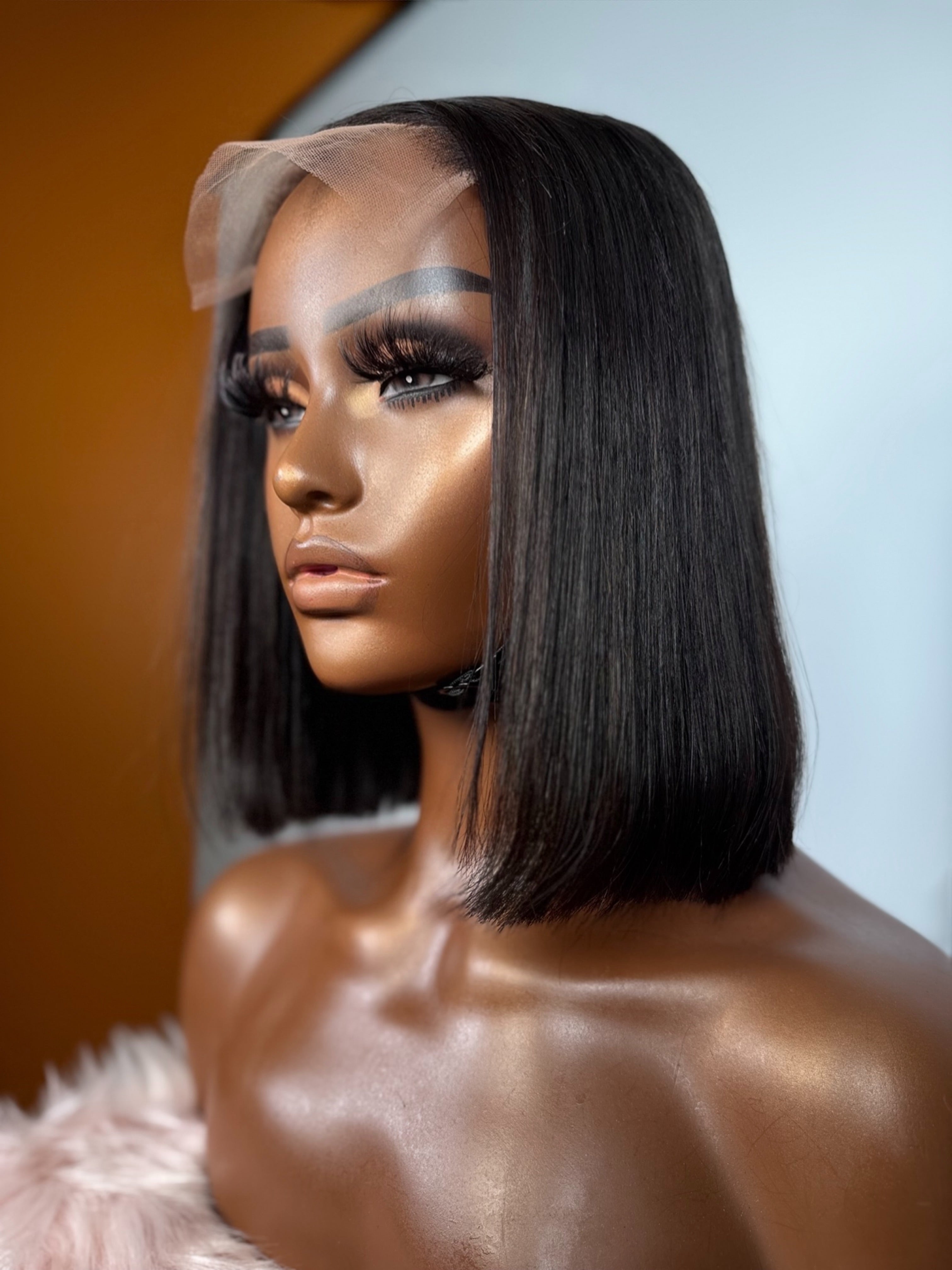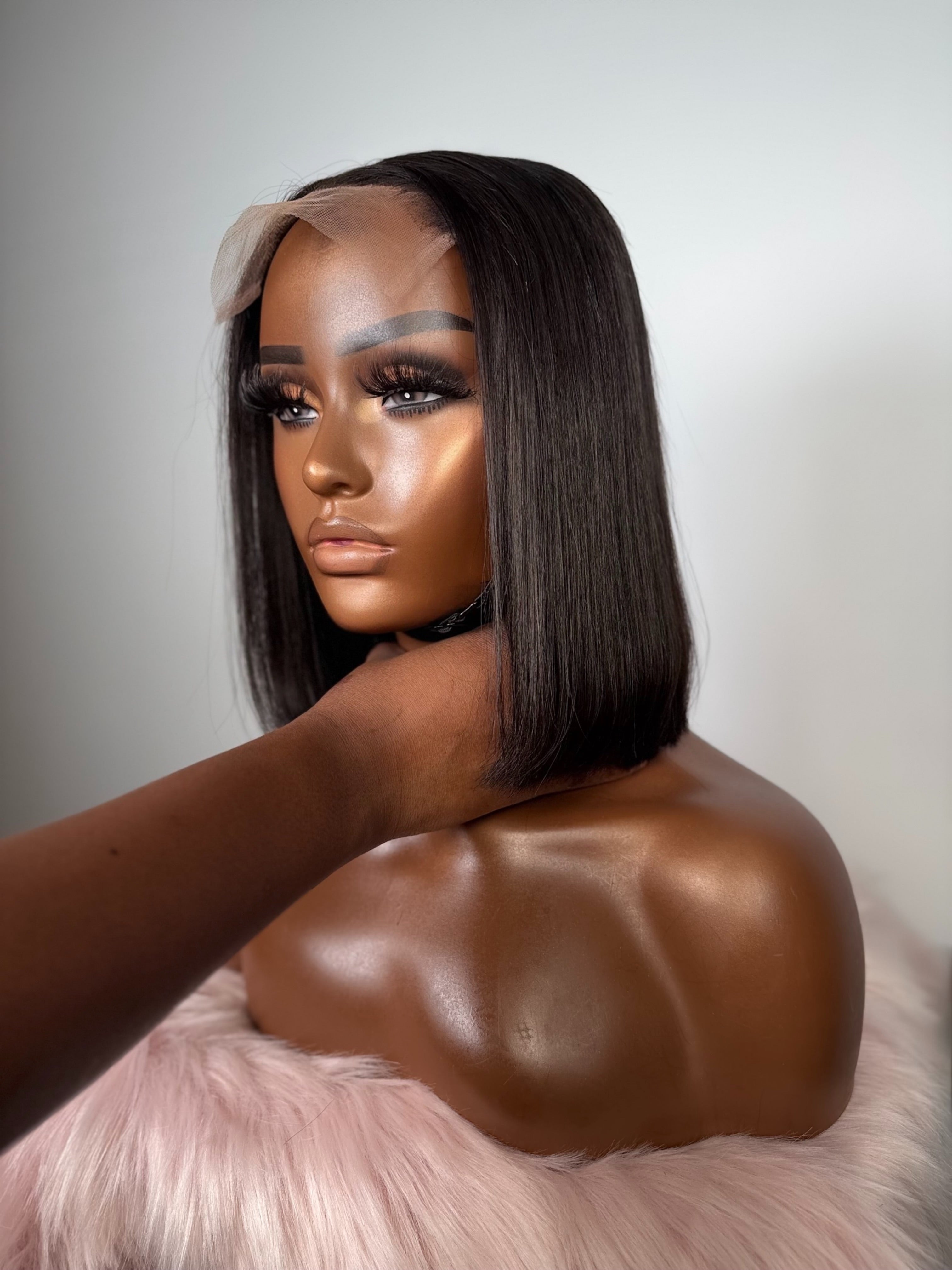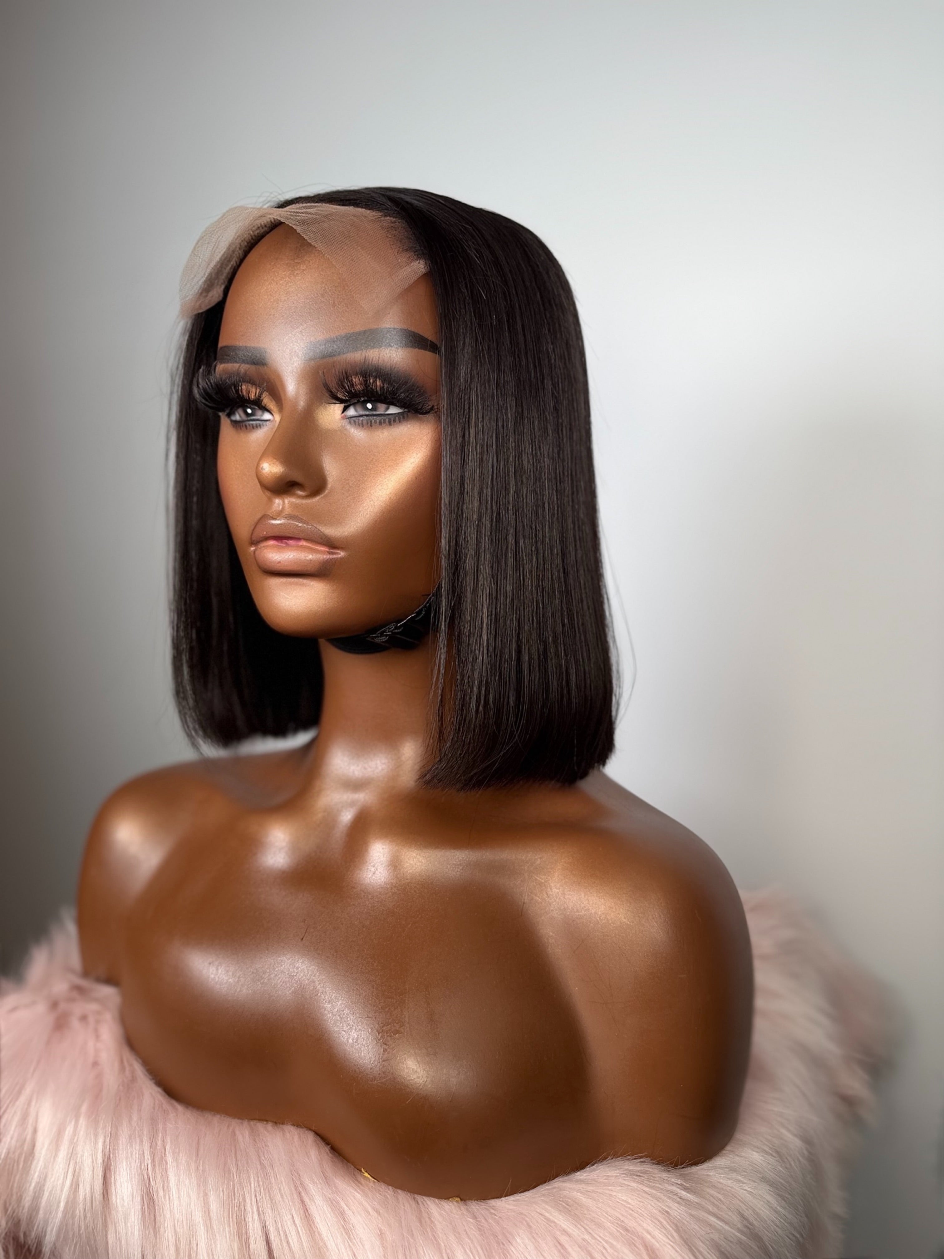 This unit features a rich, natural dark brown shade with a soft, luminous sheen that enhances its sleek, minimalist cut. Styled into a clean blunt bob with a smooth, silky finish, it frames the face beautifully and offers a modern, timeless look. The center part keeps everything balanced and chic, making it wearable for any setting.