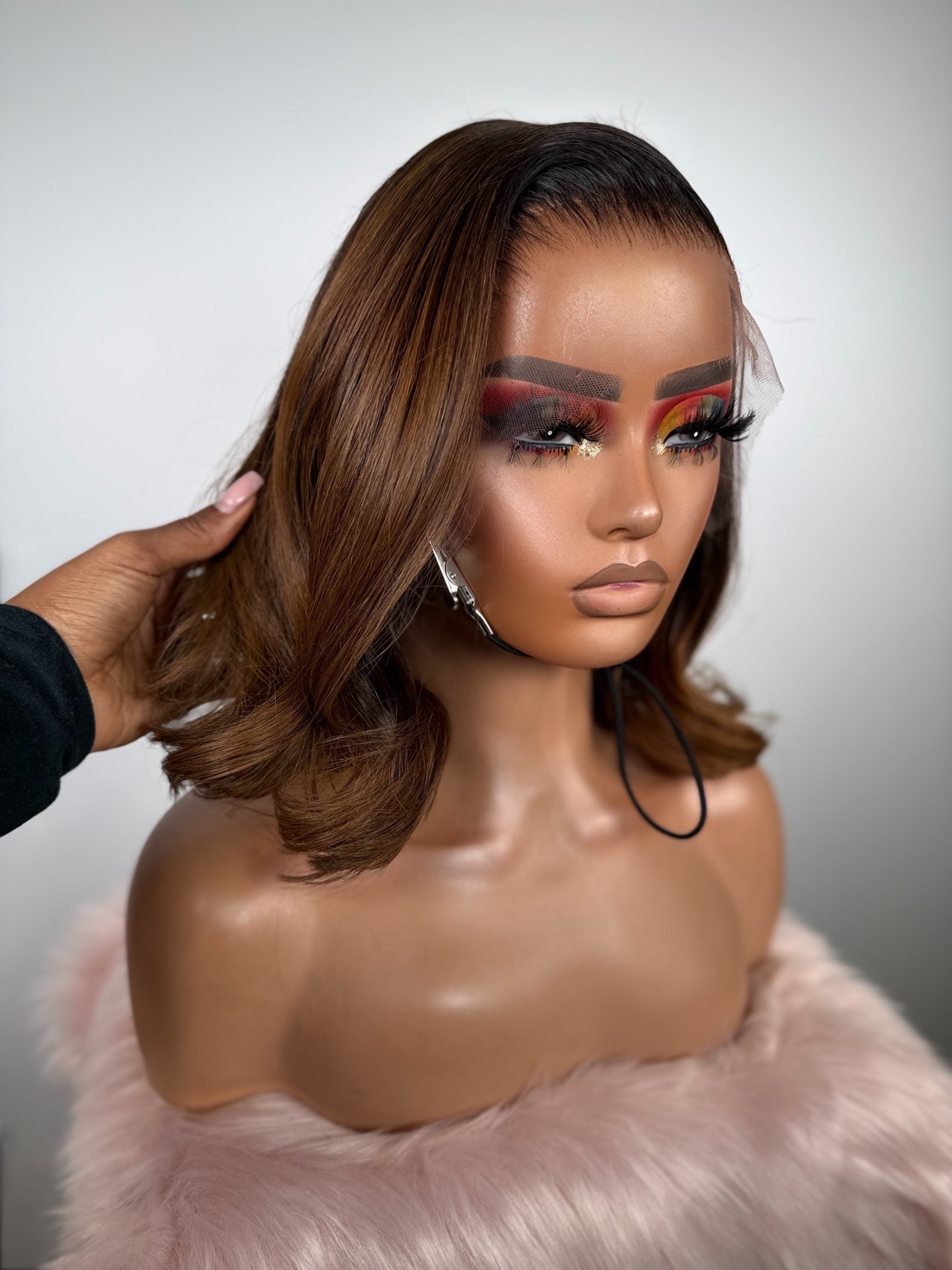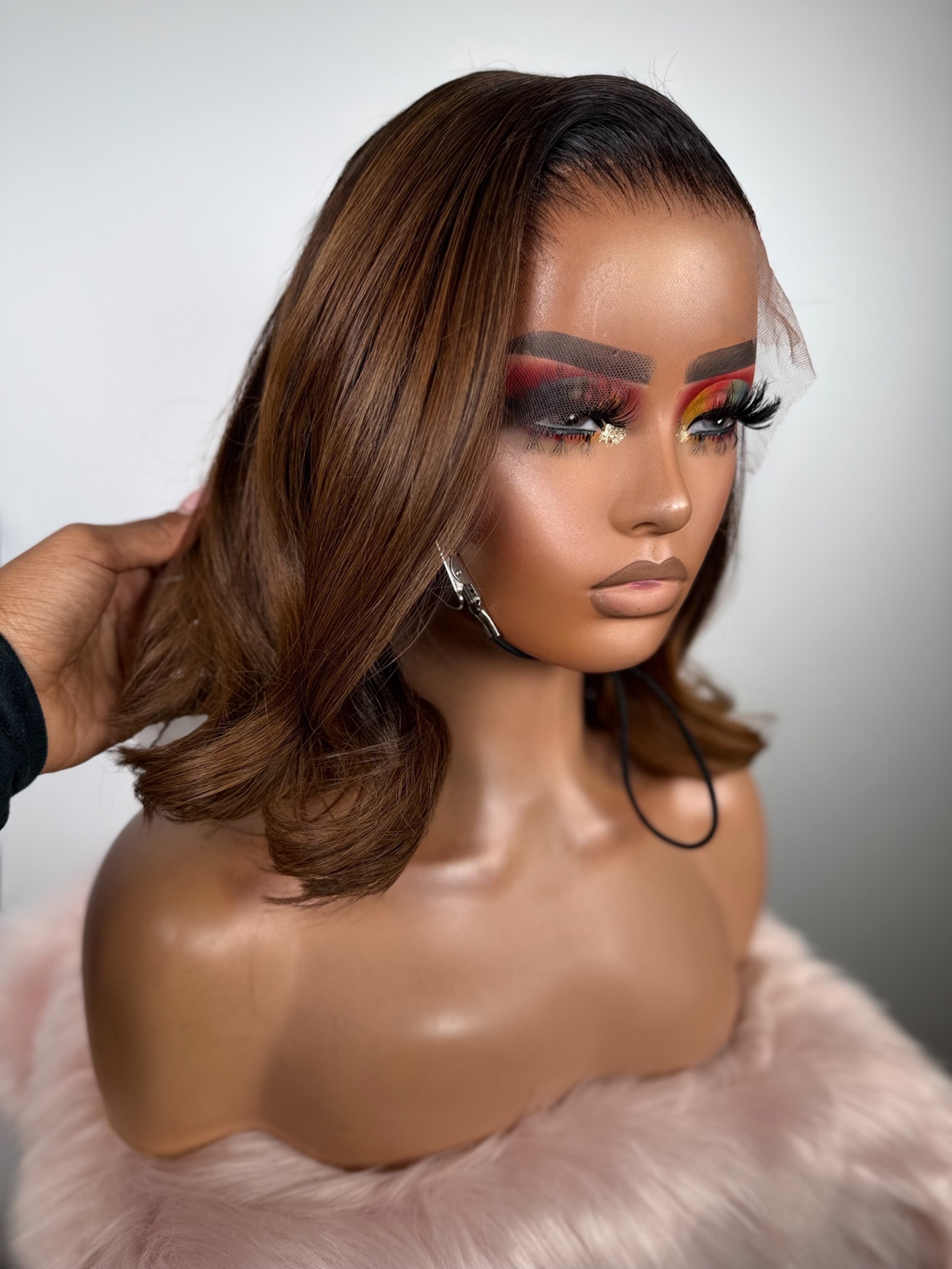This unit features a deep brunette root that melts into a warm, soft brown through the mid-lengths and ends. The color blend creates a subtle, lived-in dimension that looks naturally sun-kissed. Designed in a straight, slightly layered cut, it offers a relaxed shape that frames the face gently while keeping the overall look simple, natural, and everyday-ready.