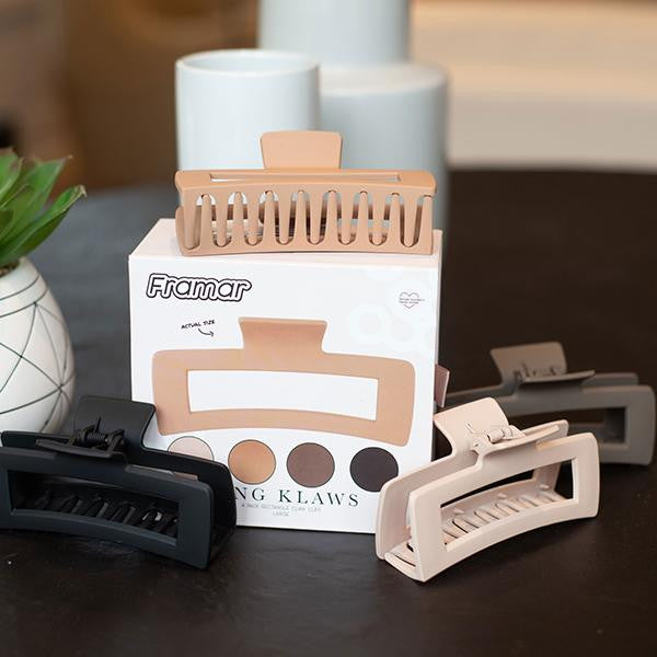 Texture caoutchoutée • Possède un puissant ressort métallique et des petites dents intérieures • 4 couleurs neutres étonnantes