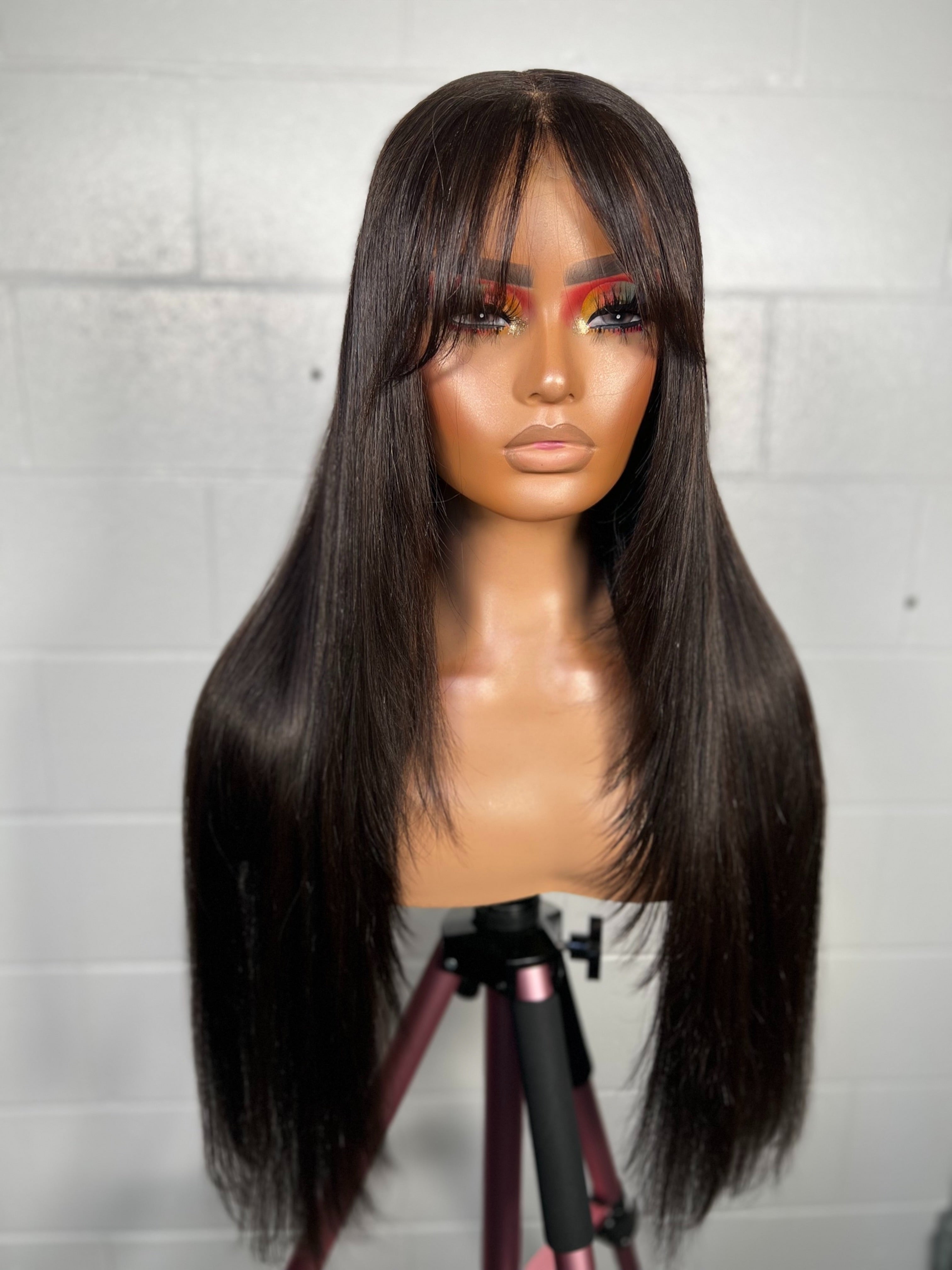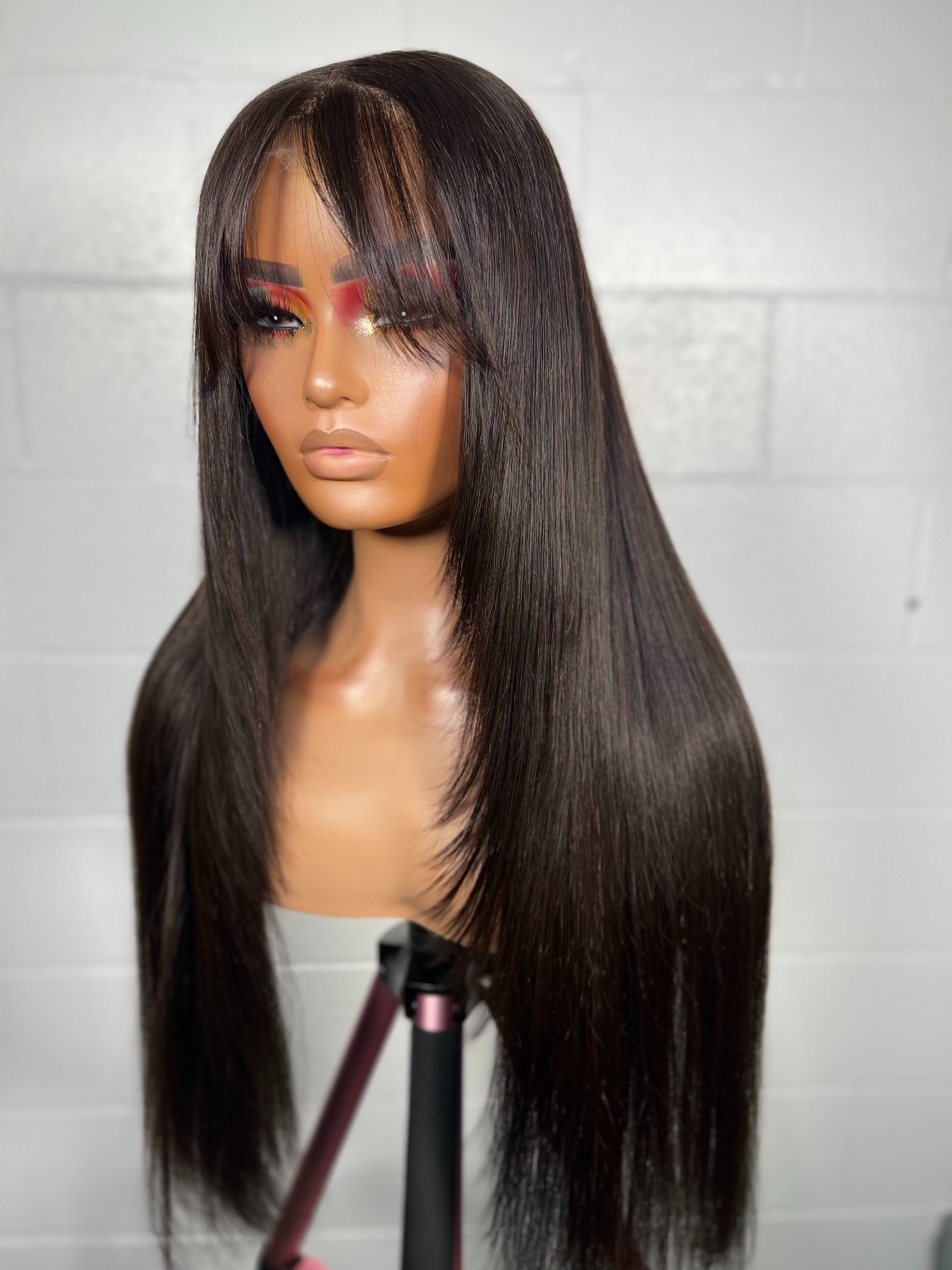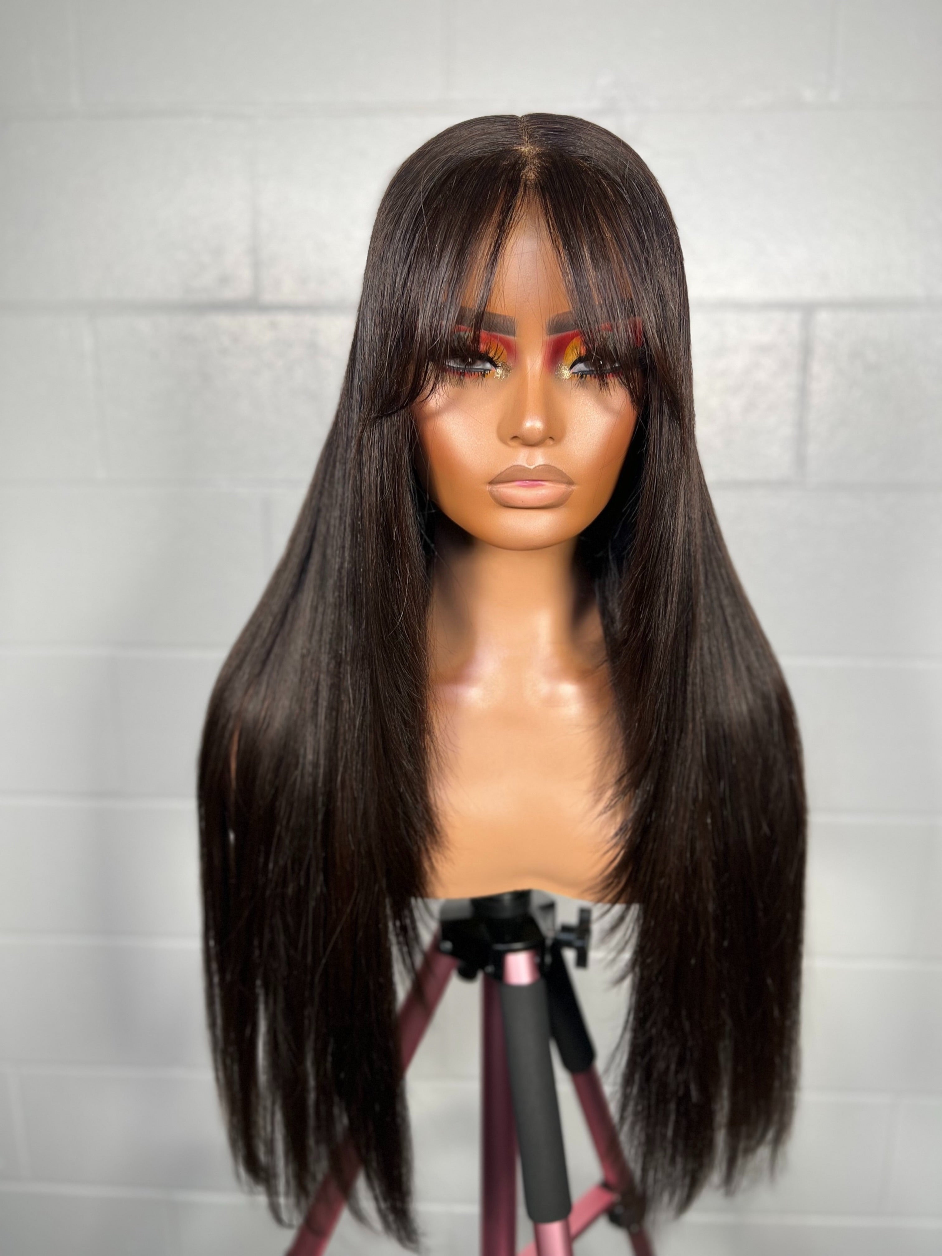 This unit is all about sleek sophistication with movement. Featuring curtain bangs that frame the face and a long, straight cut, she offers that “effortless model-off-duty” vibe. The dark espresso shade adds depth and shine, making it the perfect everyday piece for both casual polish and professional elegance.