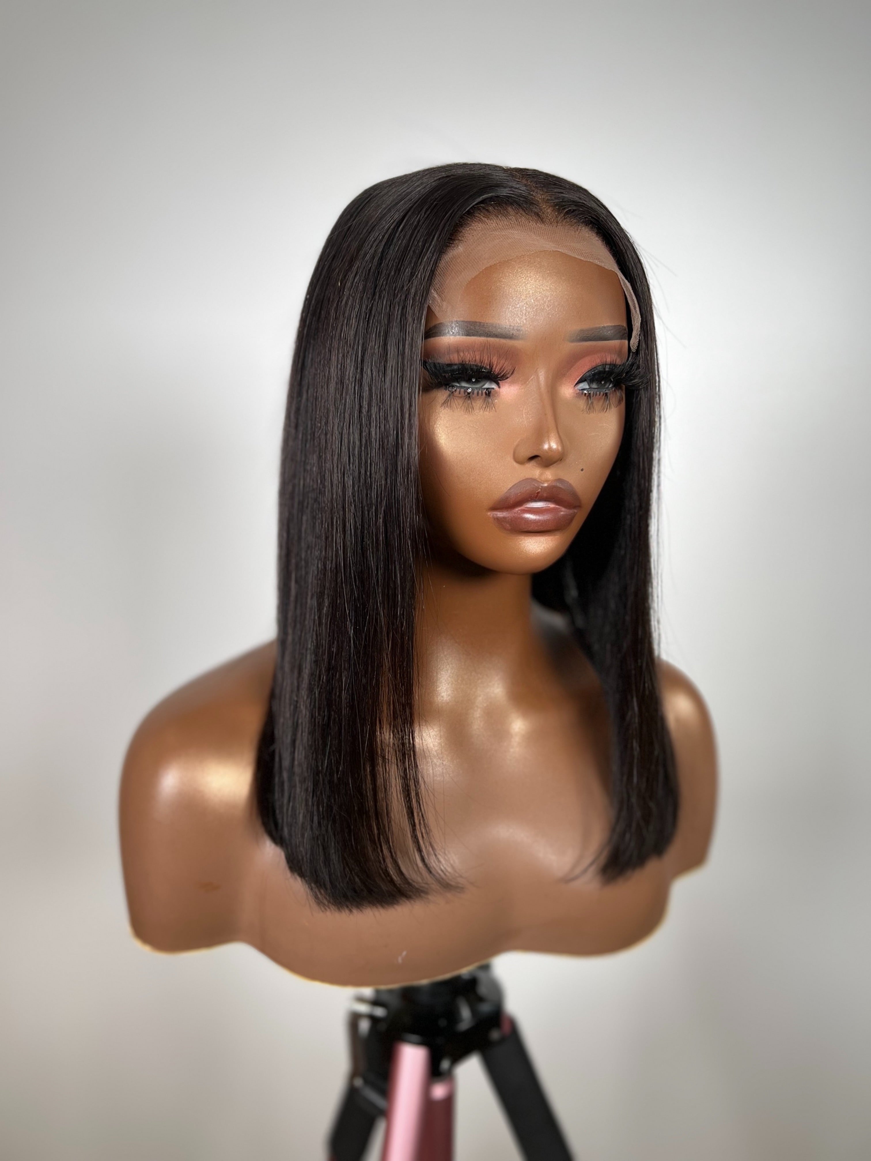 Zara is a silky, jet-black straight unit with a luxurious mirror-shine finish. The strands fall long and sleek, creating that ultra-smooth, glass-hair effect that never goes out of style. The middle part is clean and sharp, and the lace melts seamlessly along the hairline for a flawless, natural look. She gives elegance with a touch of mystery timeless, refined, and effortlessly chic.