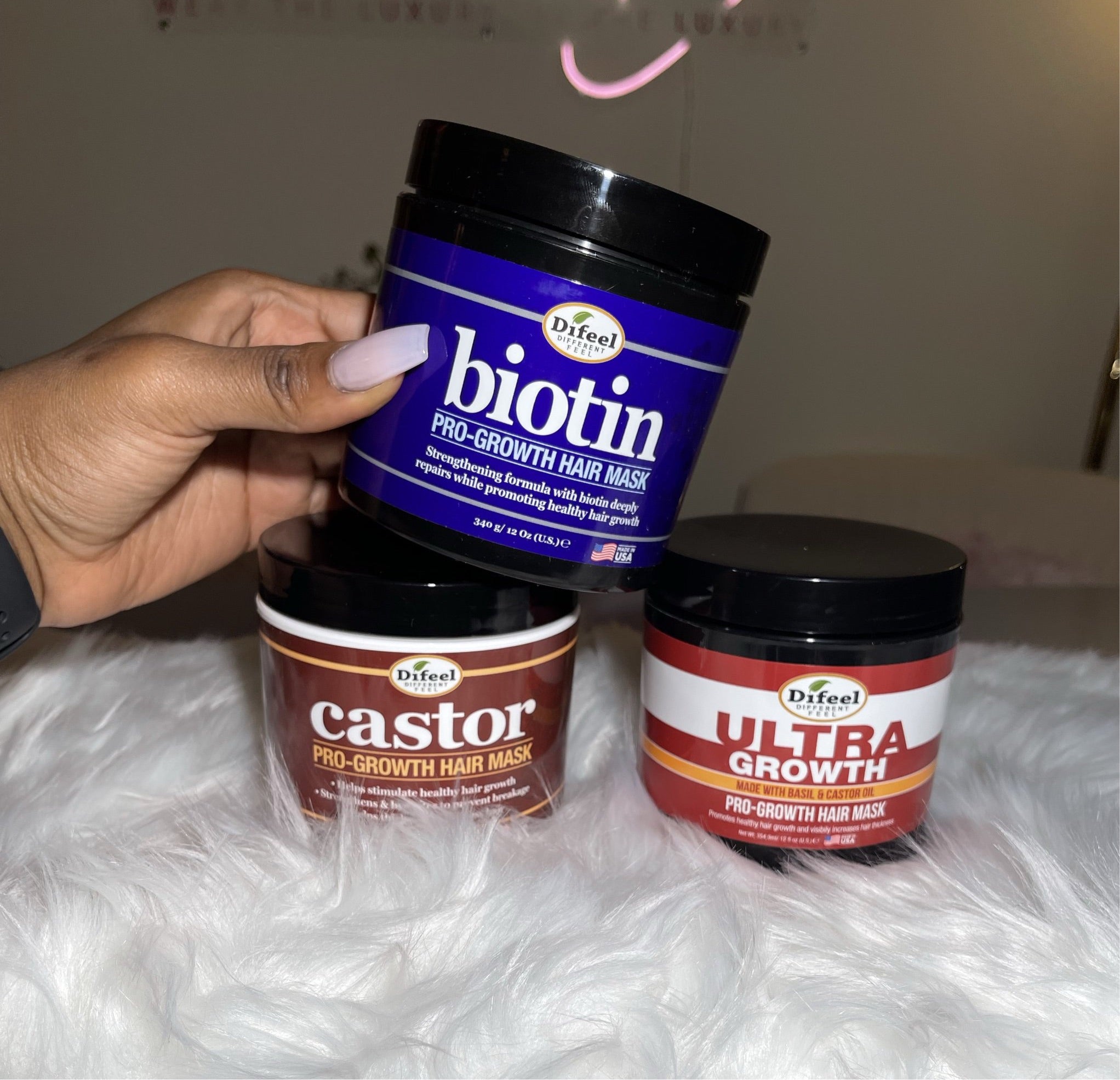 Pro Hair Growth Masks: Deep conditioning treatment that restores moisture to hair without weighing it down. Hair Loss Mask - Formulated with basil and castor oil to nourish and strengthen damaged and brittle hair. Helps reduce the appearance of hair breakage. Hair Loss Mask: Helps improve hair manageability and texture. Helps increase hair growth as it nourishes and hydrates.