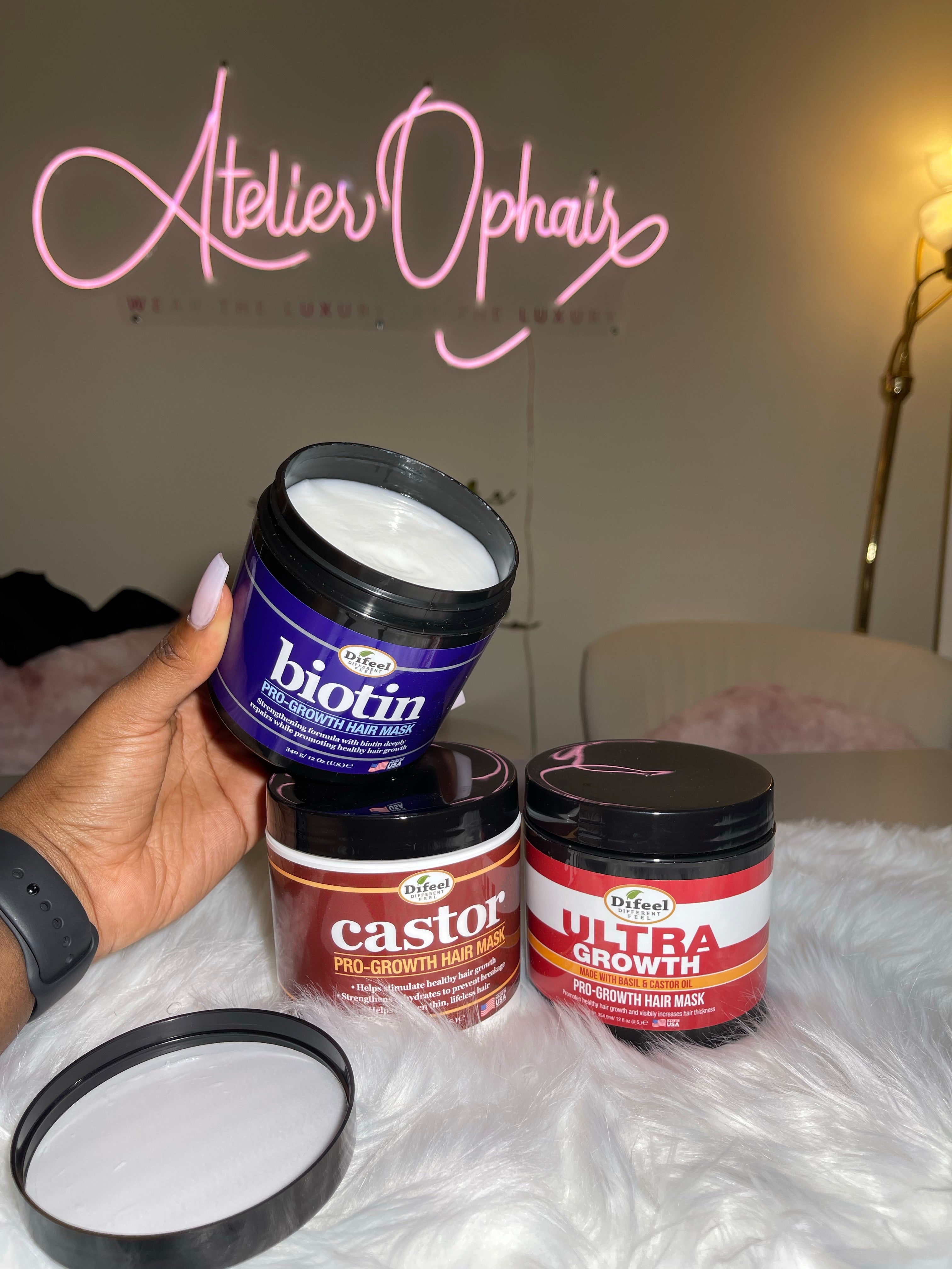 Pro Hair Growth Masks: Deep conditioning treatment that restores moisture to hair without weighing it down. Hair Loss Mask - Formulated with basil and castor oil to nourish and strengthen damaged and brittle hair. Helps reduce the appearance of hair breakage. Hair Loss Mask: Helps improve hair manageability and texture. Helps increase hair growth as it nourishes and hydrates.
